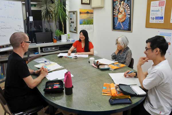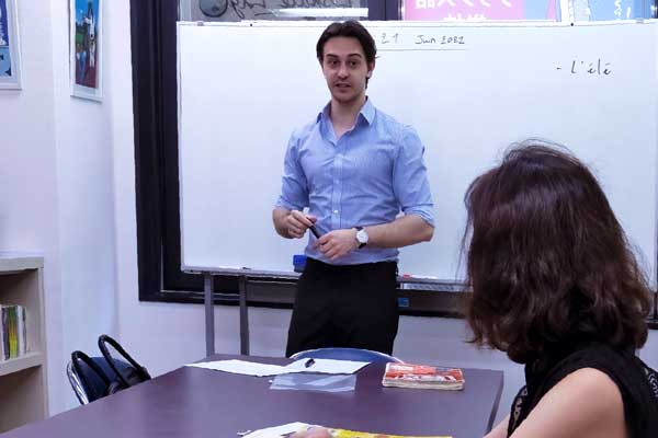 講師はフランス語の指導資格を持ち、フランス語を母国語としていますが、日本語も堪能な講師ばかりです。レッスン中に意味が分からず困ったときや文法についてなど日本語で質問ができ、それに対して日本語で答えます。また、少人数制で対応しているため、経験豊富な講師たちは、生徒さん達が分からずに困っている時にはすぐに察知し、それに応えることができます。
